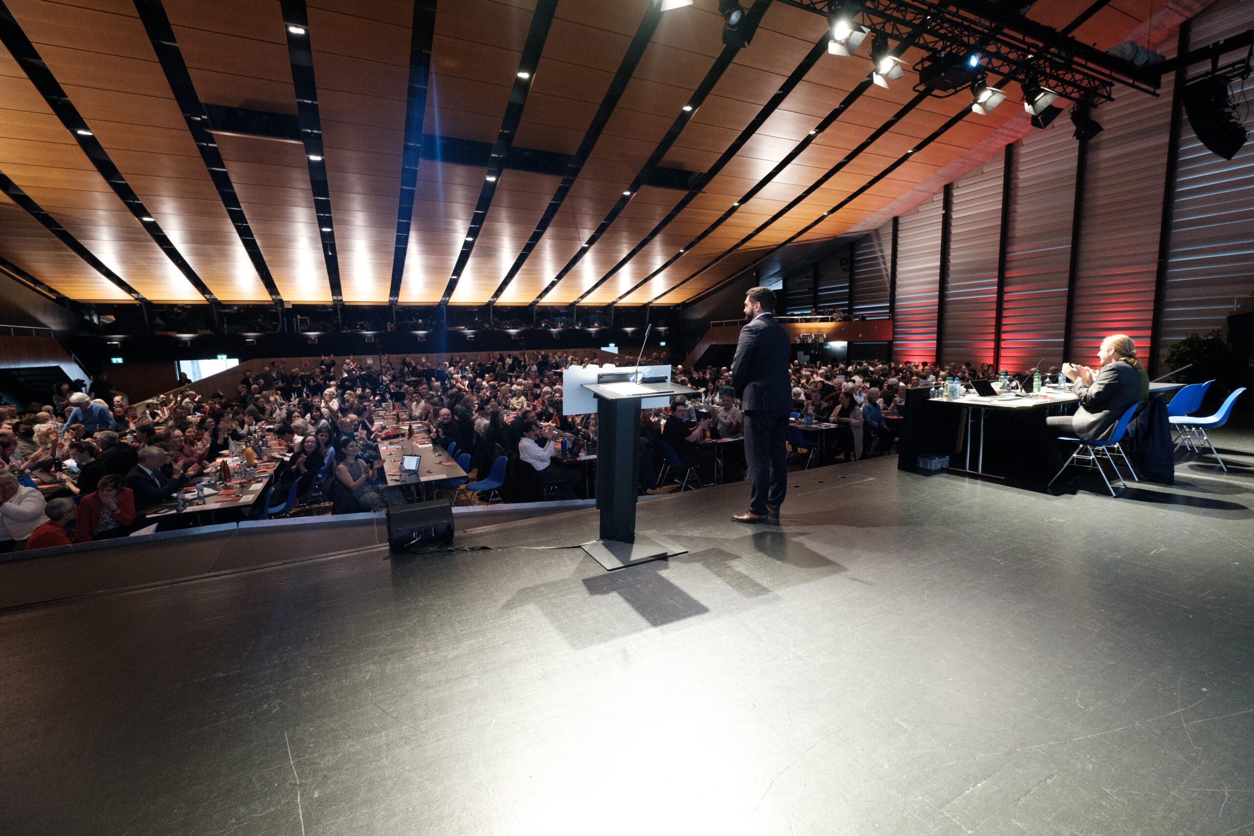 Outre les discussions sur le papier de position, le co-président du PS Suisse Cédric Wermuth et le conseiller fédéral Beat Jans, entre autres, ont pris la parole devant les délégué-es. Cédric Wermuth a évoqué les dangers d’une politique qui détourne l’attention des problèmes réels en montant les gens les uns contre les autres. « Il est essentiel de renforcer la démocratie et la cohésion : avec un service public médiatique fort et indépendant, des règles claires pour les entreprises et une politique d’égalité qui se traduise dans la vie quotidienne, par exemple avec l’imposition individuelle. »